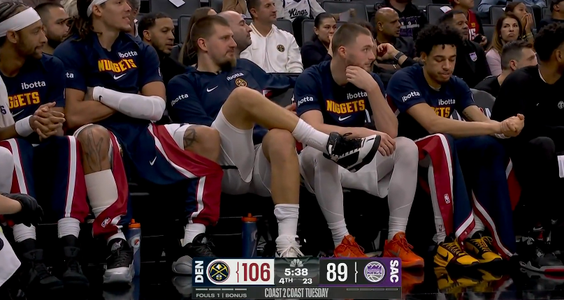 At the end of the game, Jokic sat on the bench to rest. Murray and Valanciunas led the team to widen the point difference 16-4. During this period, Teacher Jokic was too comfortable watching the game with his legs crossed. The Kings continued to counterattack, with 4 minutes and 50 seconds left in the game. Jokic scored a throw and a tough 2+1, which made Sasha 6 fouls.