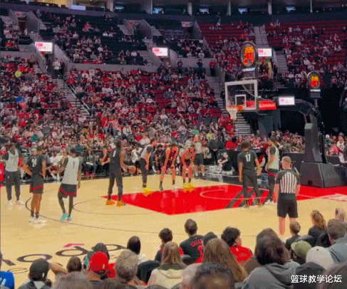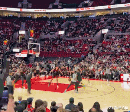 On October 5, the Trail Blazers organized a fan carnival event, and thousands of Trail Blazers fans attended the event. This was also Yang Hansen's first appearance at the Trail Blazers home court. The two rookies of the Trail Blazers, Yang Hansen and Caleb Love, were carrying small schoolbags and dancing with cheerleaders. A must-have link for NBA rookies, Yang Hansen danced very happily! The first preseason game of the Trail Blazers is 10:00 a.m. on October 9, and there are four days left. Today, the Trail Blazers arranged an internal team match, with Yang Hansen and Klingen directly playing. The two of them refused to give in. Klingen first swung his big elbow when he got stuck at the basket, and then pulled it, and Yang Hansen was directly overturned to the ground.