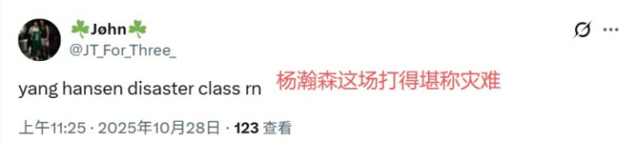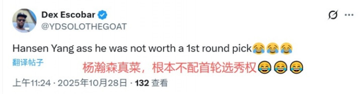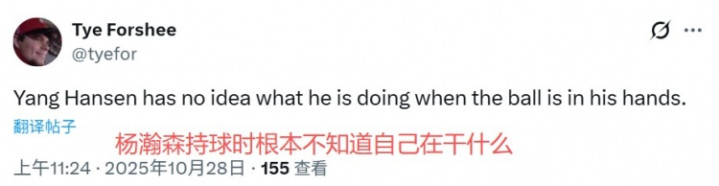 American netizen: Yang Hansen is not worthy of the first round. He was targeted and exploded on the court, which was a disaster.