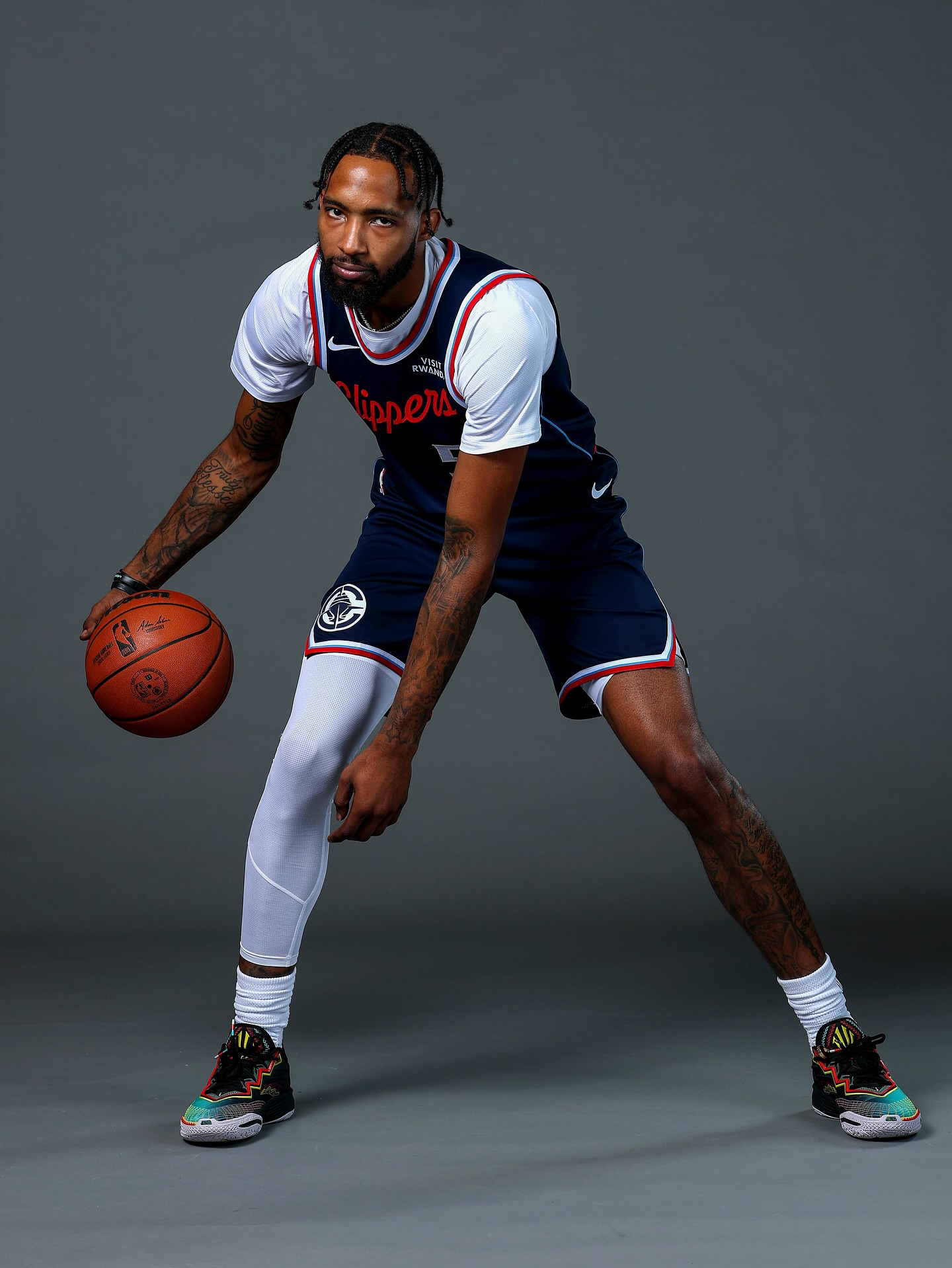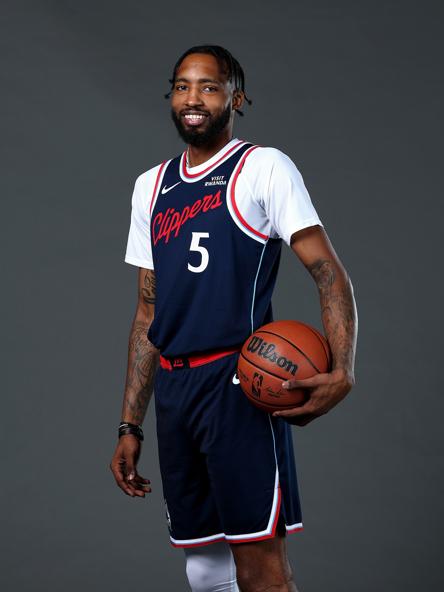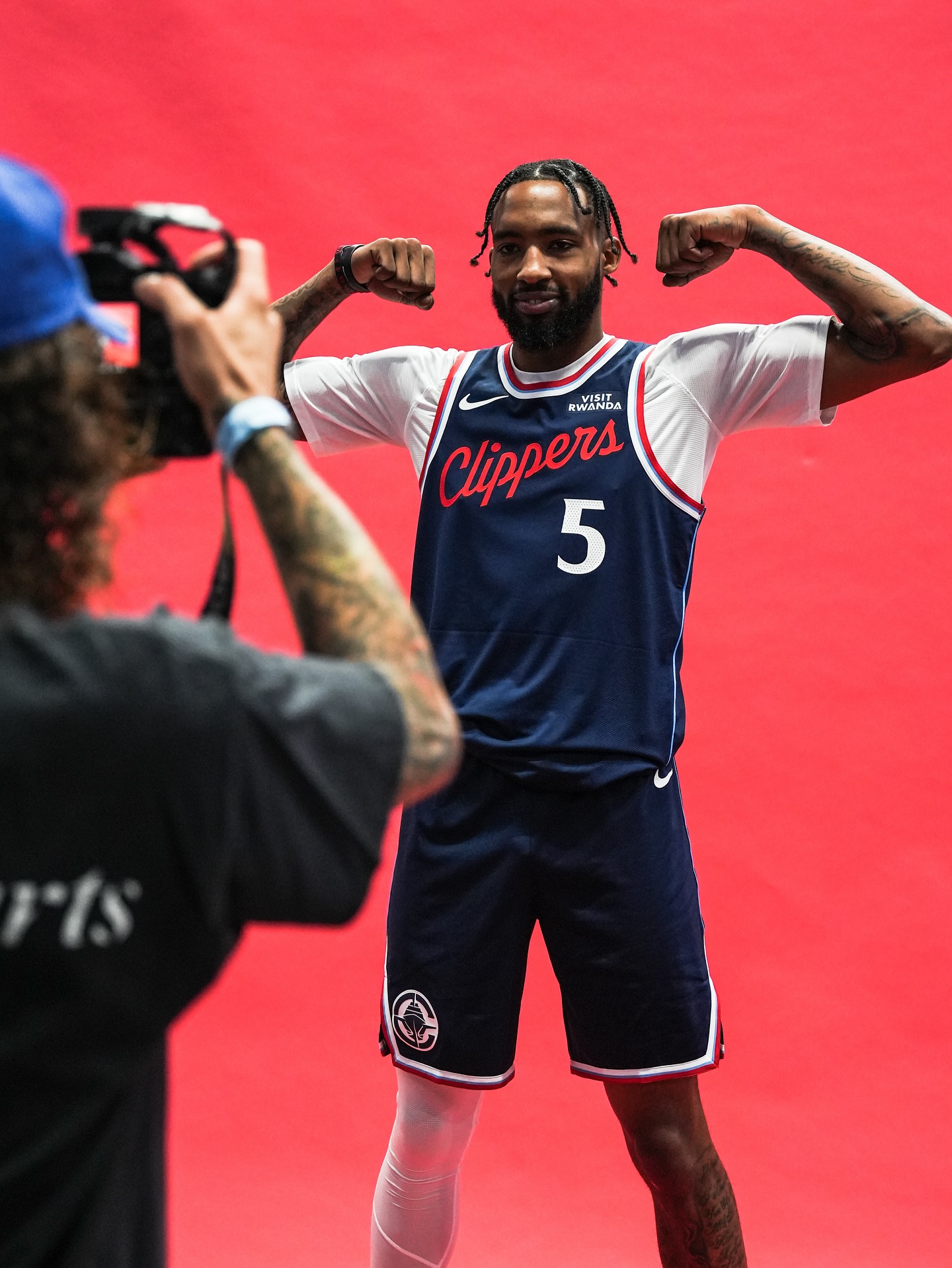 The Clippers released a photo report on ins. Media Day 2025: Derrick Jones Jr. wearing jersey No. 5 appeared