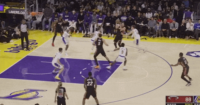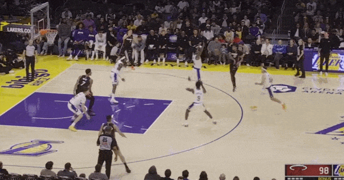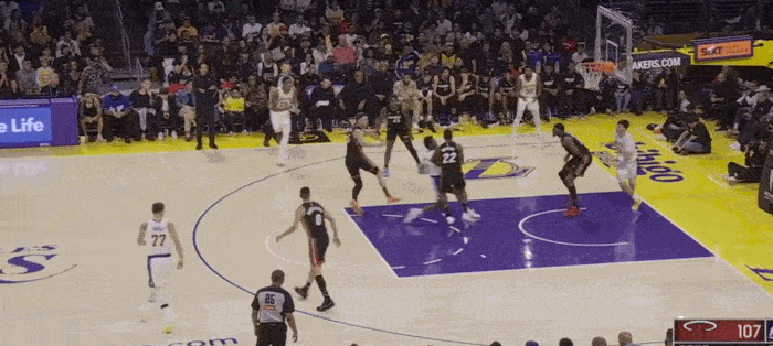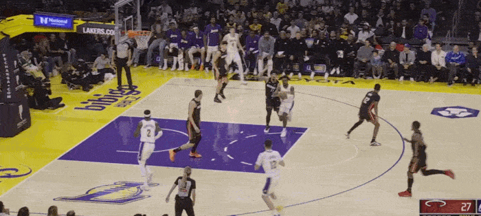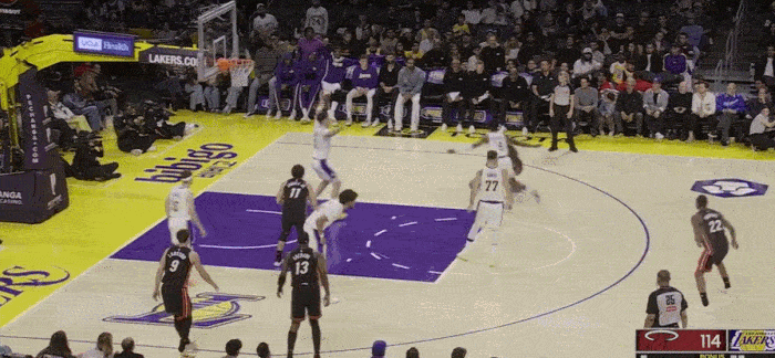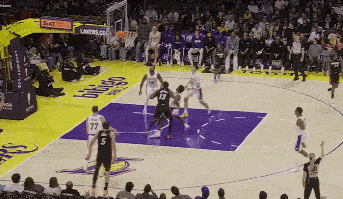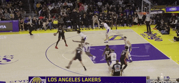 The Lakers' second height is not high, and sometimes they will play five small, resulting in The defender was forced to get in position with the inside line. Brownie did not do a bad job and actively blocked the position to create opportunities for his teammates.