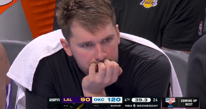 On November 13, in the NBA regular season, the Lakers defeated the Thunder by 29 points 92-121 in an away game, trailing by up to 37 points. Doncic played 32 minutes, made 7 of 20 shots, 1 of 7 three-pointers, and scored 19 points, 7 rebounds, 7 assists, 2 steals and 4 turnovers. He had a plus-minus of -31, a season low, and surrendered one quarter early.