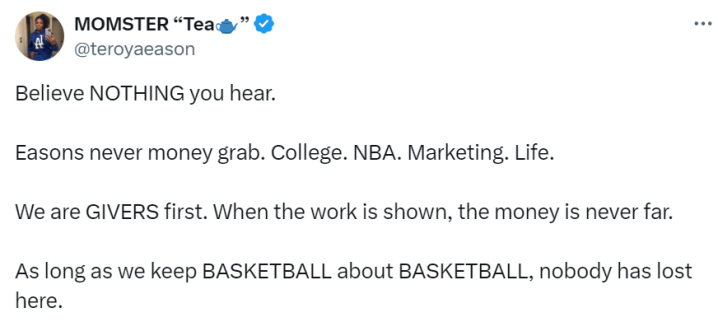She wrote: "Don't believe any rumors you hear. People in the Ethan family have never been greedy for money - whether it is going to college, playing in the NBA, doing business promotion, or in life, we always put 'payment' first. As long as we show our strength, wealth will naturally follow. As long as we always focus on basketball itself, no one will lose."