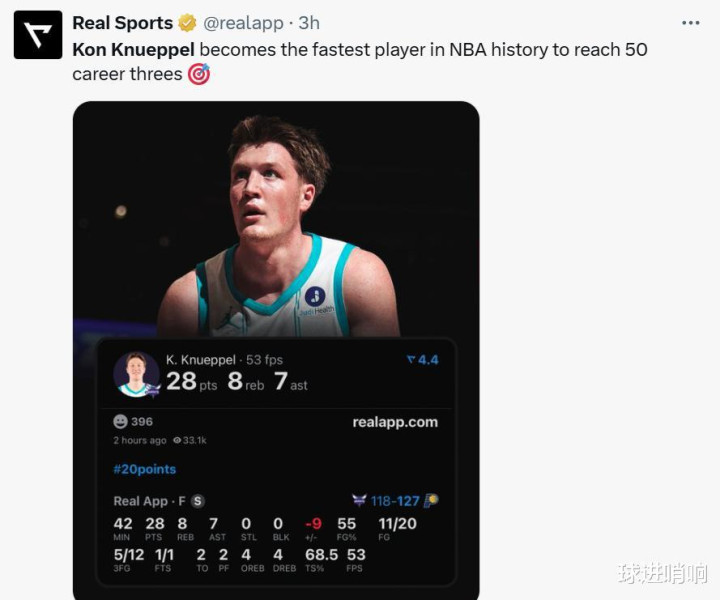 This performance is also the epitome of No. 4 pick Knupel's hot performance since the beginning of the season. This young man who played second fiddle to Flagg in college quickly rose to prominence after entering the NBA.