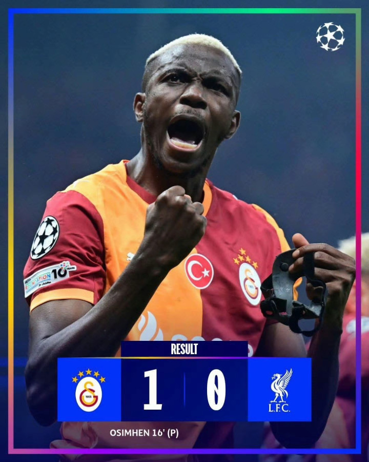 Compared with the five major league teams that cut melons and vegetables in the same game, both Premier League teams are in trouble on remote away games. Liverpool came across the European continent to Istanbul against Galatasaray. The Turkish champion completed the game at his devil's home court and shocked the Premier League champion. Sobosloy gave Galatasaray a chance at the 15th minute. Osmayen broke the deadlock in one go, and this was the only goal in the game. After that, Galatasaray withstood the waves of Liverpool's attacks and successfully defended the home court.