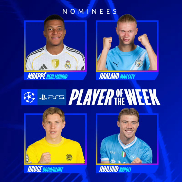 Mbappe was elected the best player in this round selected by the Champions League by the official Champions League, and other candidates include Haaland, Heyug and Hoylen.