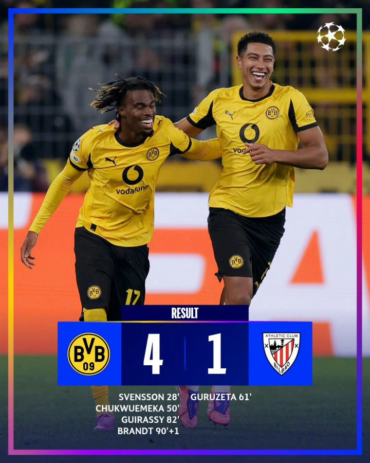 In the encounter between the five major league teams in the same period, multiple goals before the end of the game changed the outcome of the win, draw, and loss. In addition to Barcelona, which was defeated by Paris, Manchester City also encountered a draw from Monaco. Haaland took the lead for Manchester City twice, but Monaco was very tenacious at home. They even suppressed their opponents in the second half. Teze equalized for the team for the first time, and Dell's penalty kick allowed Monaco to hold a point. Juventus is very close to reversing Villarreal. Although Mikataze scored first for Huang Qian, Gati and Kosésan's goal in 7 minutes gave Juventus hope for victory, but they could only get a draw again. Renato Vega made the old woman the side tied. Dortmund defeated Athletic Bilbao, which was in poor form recently at home. They won a big victory at multiple points. Svensong, Chukuemeka, Gilasi and Brandt scored goals respectively. Athletic Bilbao has delivered a dismal record of 1 draw and 6 losses in the last 7 games.