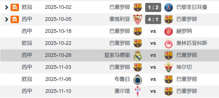 Barcelona suffered two consecutive defeats in all competitions before the October international break. This weekend the La Liga will host Girona, next week the Champions League will host Olympiakos, and then the next weekend will be the El Clasico. Barcelona will challenge Real Madrid away. This battle will affect the La Liga championship trend this season. Lewandowski needs to wait until the November international break to return. During the injury period, Barcelona will only have a tough away game against Real Madrid, which is a good schedule.