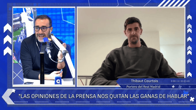 Hupu reported on November 20 that Real Madrid goalkeeper Thibaut Courtois accepted an exclusive live interview with Radio Corbett.