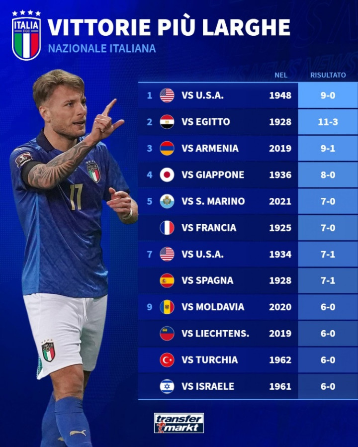 November 14 News In the early morning of November 17, Italy will face Norway at home in the final round of the World Cup preliminaries. Italy needs to beat Norway by at least 9 goals in order to qualify directly. German Transfer Market lists the biggest wins in Italian team history.