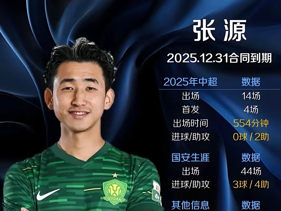 28-year-old Zhang Yuan joined Guoan in the summer of 2023. He only played 44 times in two and a half seasons, scoring 3 goals and 4 assists.