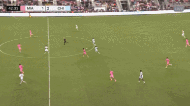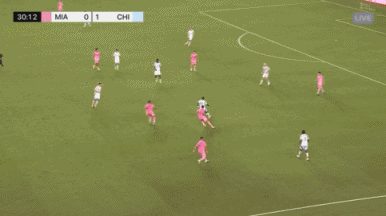 In the 38th minute, Miami won a game back! Messi's corner kick from the right ended at the front of the penalty area, Busquets' header was saved by the goalkeeper, and Aviles scored a goal after the second shot, and Miami 1-2 Chicago Flames. ↓