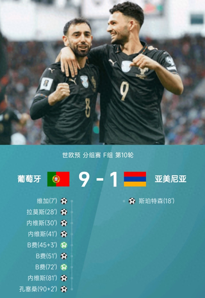 On November 16, good news came from the World Cup European Qualifiers. The Portuguese team faced a crucial matchup with Armenia at home, and finally defeated their opponent 9-1.
