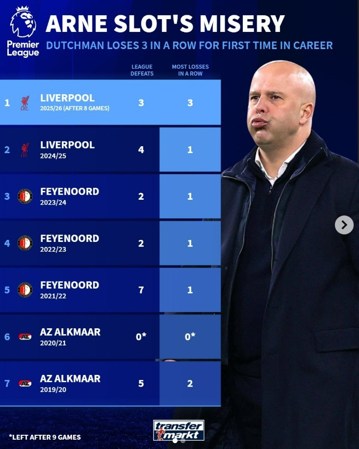 October 20th: In this round of the Premier League, Liverpool lost 1-2 to Manchester United. This is also the first time in Slott's coaching career that he has suffered three consecutive defeats in the league. The following are the details of his coaching: