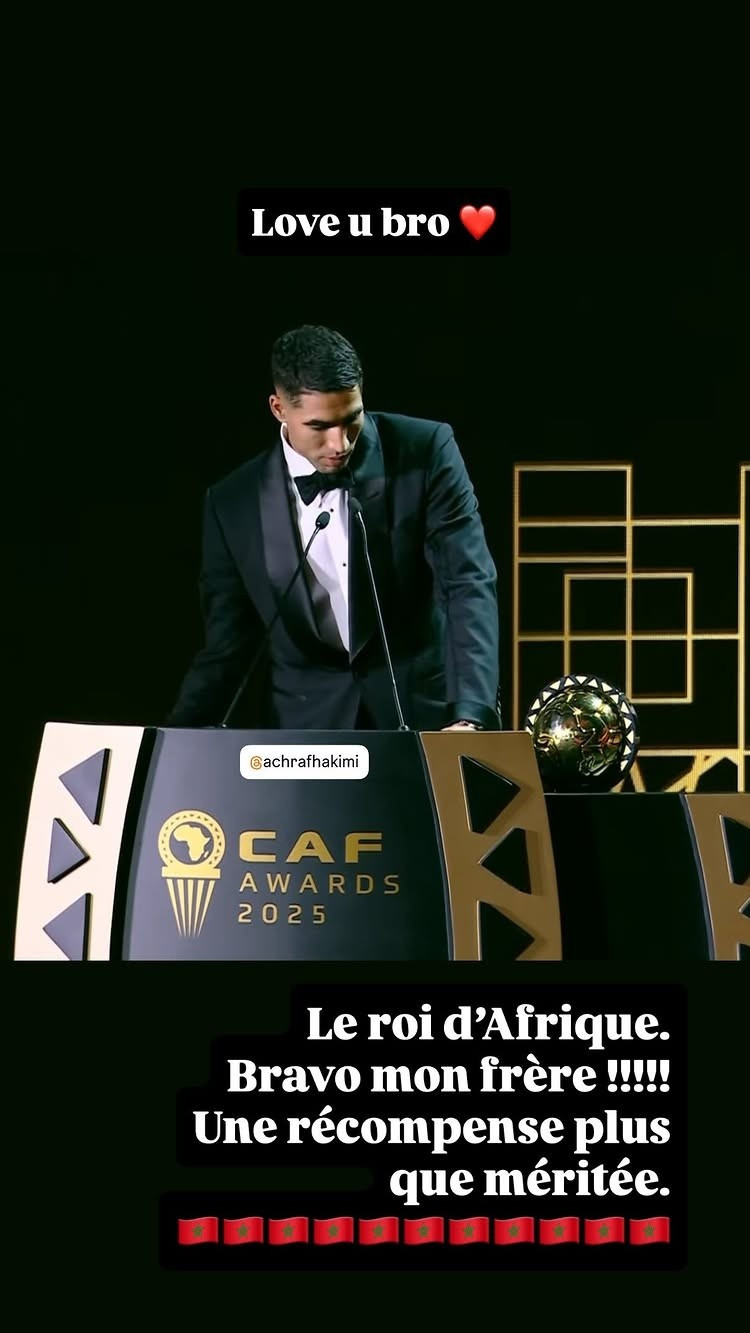 After the award was officially announced, Ashraf was also blessed by many friends and celebrities. This shows their recognition. Mbappe posted on social media and said: "Love you, brother! King of Africa. Well done, my brother... This The honor is well deserved."