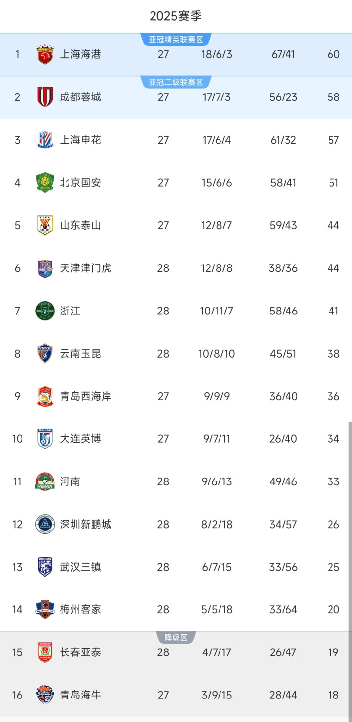 The latest standings are out, with Yatai and Manatee in the relegation zone.