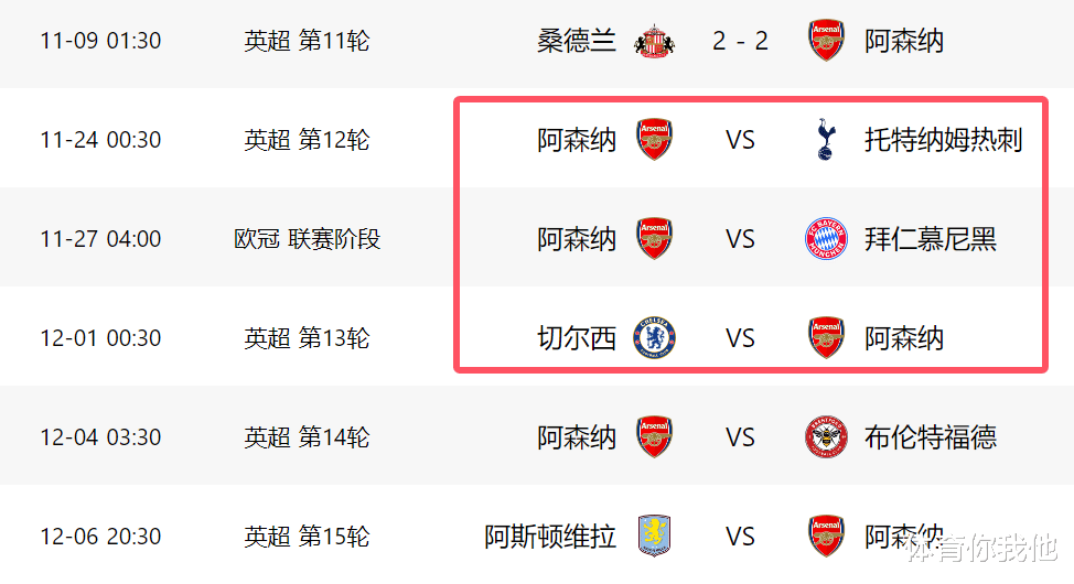 According to the schedule, Arsenal will face Tottenham in the 12th round of the Premier League, and then they will also face Chelsea. In just 7 days, Arsenal will play two consecutive London derbies. What's even more amazing is that between these two derbies, Arsenal will also play Bayern in the Champions League. Even if Arteta chooses to rotate in the Champions League (the group qualifying is not a big problem) and fully protect the league, Arsenal will be difficult to get 6 points in the two Premier League games. They may not even get 1 point.