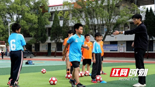 Red Net Moment News, November 18 (Correspondent Huang Xin, Jiang Ruobing, Correspondent Peng Yi) This year, the Hunan Super League has become popular all over the Internet, igniting the passion for football among the general public. In Xintian County, 10 college student volunteers selected by Hunan University of Science and Technology went to 10 rural schools to carry out two-month football teaching activities. The football style has also spread from the "vast stadium" to the "fields and mountains."